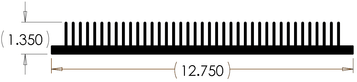 12.75" Wide X 1.35" Tall Flatback Heatsink 2170